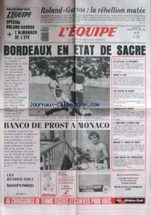Descriptions EQUIPE (L') [No 12770] du 30/05/1987 - ROLAND-GARROS - BORDEAUX - FOOT - BANCO DE PROST A MONACO - JEU A XIII - RUGBY - AUX FIDJIENS DE DANSER - JOHNSON - ATHLETISME - CYCLISME - LA MONTAGNE - ESCRIME - MODAINE ET LAMOUR - BOXE - TYSON. livre