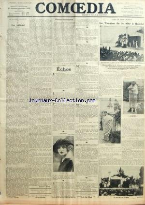 Descriptions COMOEDIA [No 2164] du 04/09/1913 - LE VOLEUR PAR JULES BOIS - PIECES D'ARTILLERIE PAR G. DE PAWLOWSKI - ALPHONSE KARR - MLLE ANDREE YVEL - LES BEAUX-ARTS ET LE BATIMENT - JACQUES-CHARLES DIRECTEUR DE L'OLYMPIA - ALPHONSE ALLAIS - PAUL ADAM - CHARLOTTE WIEHE - CHARLEY FRANK - SUR LA COTE D'AZUR - LE THEATRE DE LA MER A BANDOL - M. ET MME SILVAIN Télécharger