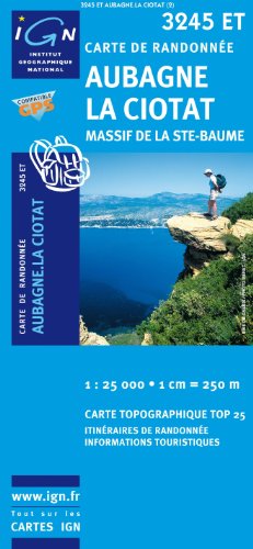 Descriptions Top25 3245ET ~ Aubagne, La Ciotat, Massif de la Ste-Baume carte de randonnée avec une règle graduée gratuite En ligne gratuit