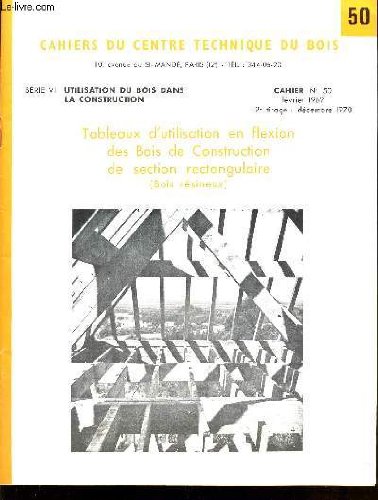 Descriptions CAHIERS DU CENTRE TECHNIQUE DU BOIS / CAHIER N°50 - TABLEAUX D'UTILISATION EN FLEXION, DES BOIS DE CONSTRUCTION DE SECTION RECTANGULAIRE (BOIS RESINEUX) / SERIE VI : UTILISATION DU BOIS DANS LA CONSTRUCTION. En ligne gratuit