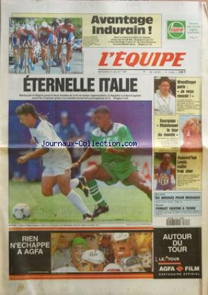 Descriptions EQUIPE (L') [No 14982] du 06/07/1994 - AVANTAGE INDURAIN - ETERNELLE ITALIE - WENDLINGER PARLE JE VEUX REVENIR - BOURGNON MAINTENANT LE TOUR DU MONDE - AUJOURD'HUI LEWIS COUTE TROP CHER - ESCRIME - DU BRONZE POUR MODAINE - TENNIS - FORGET VENTRE A TERRE livre